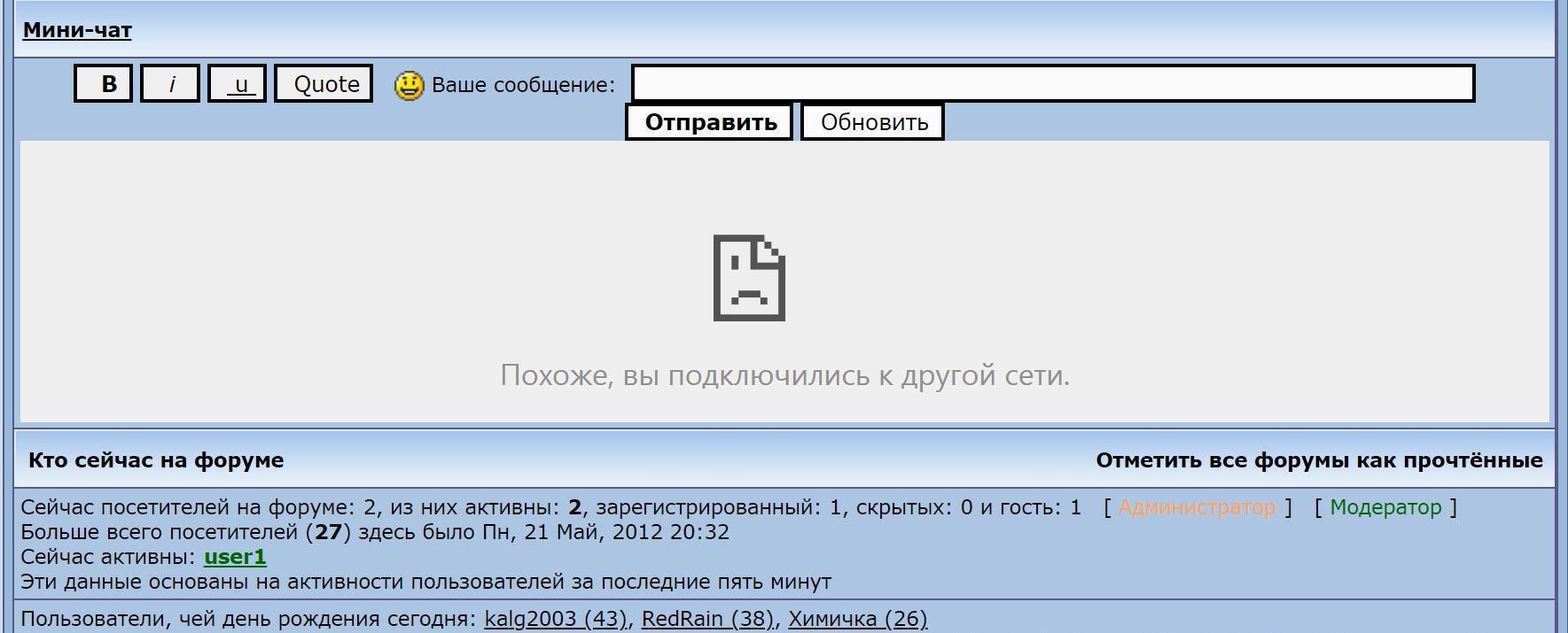 Если однажды в момент обновления у вас не будет интернета – вместо чата появится ошибка, примерно как на скриншоте, и будет висеть, даже если интернет уже восстановился, поскольку страница браузера с ошибкой, в отличии от чата, не умеет обновлять себя сама.