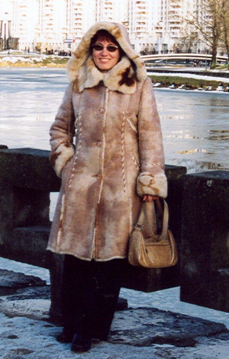 Вот её маленькая фоточка, взятая из моего архива и помещаемая здесь с её личного разрешения. Местность вокруг - это город Минск, набережная р. Свислочь напротив "острова Плача". Всё это - Троицкое предместье...