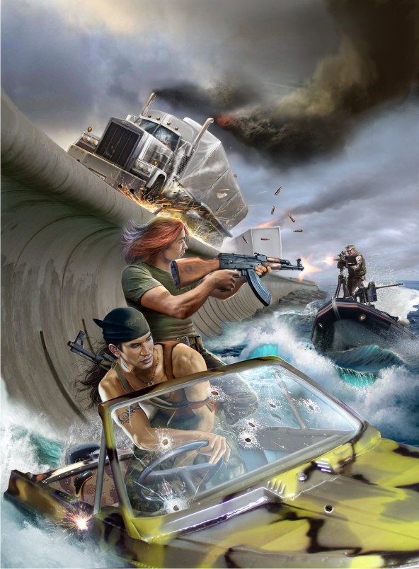 Действительно хорошая обложка, редкий случай, когда именно по книге сделано. Придираться к расстоянию до дамбы смысла нет, иначе бы она на обложку не влезла. Правда некоторые читатели удивятся тому, что боевых действий кроме как на обложке в книге особо и нет .