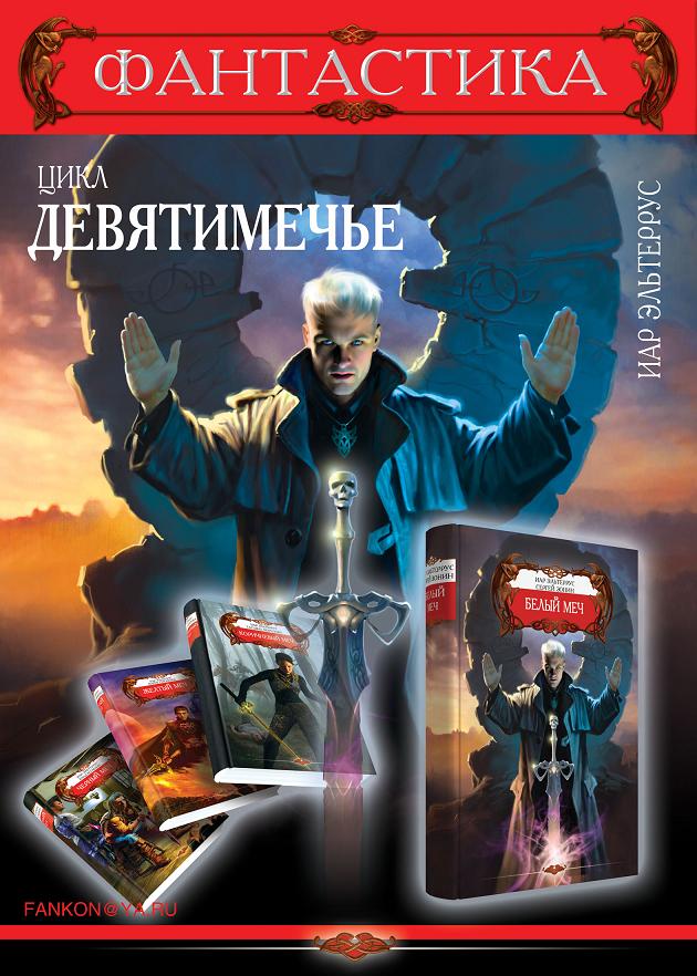 Появилась обложка на "Белый Меч". И общий плакат на цикл "Девятимечье" - он вскоре будет висеть по всем книжным магазинам Питера и Москвы. Обложка и плакат ниже.
